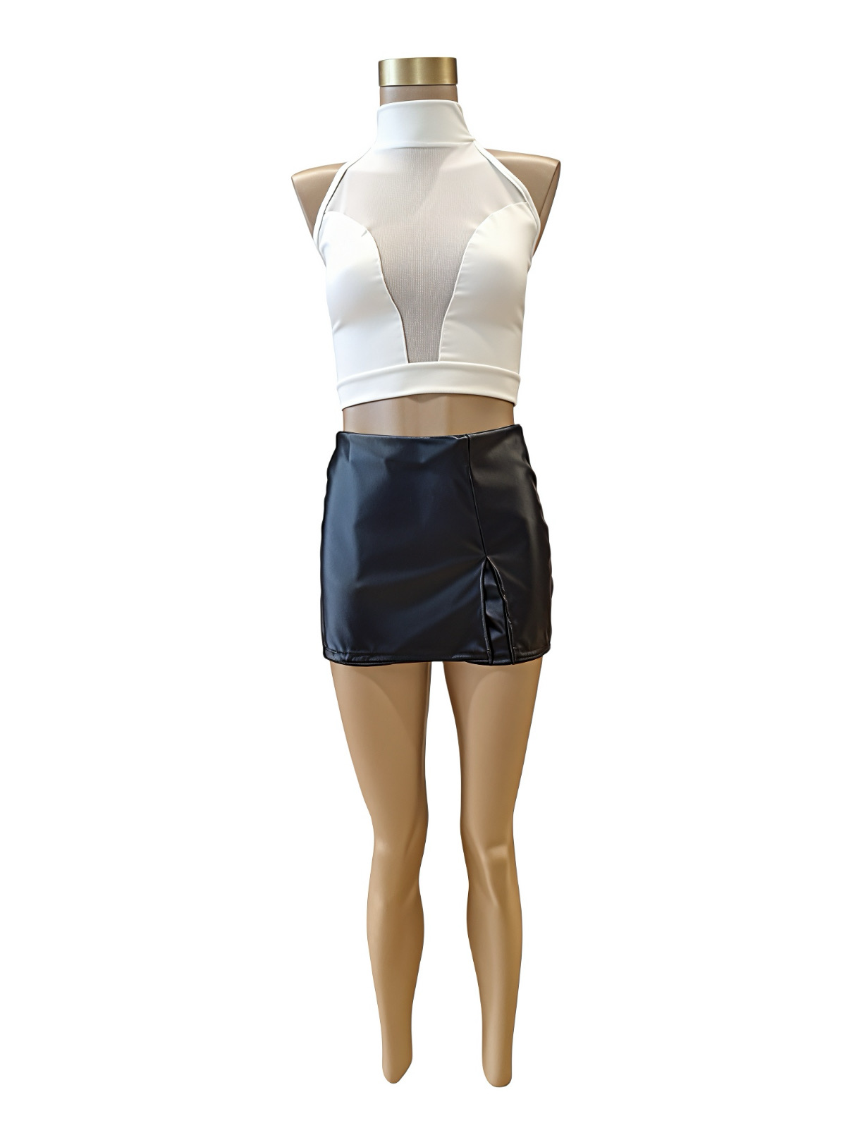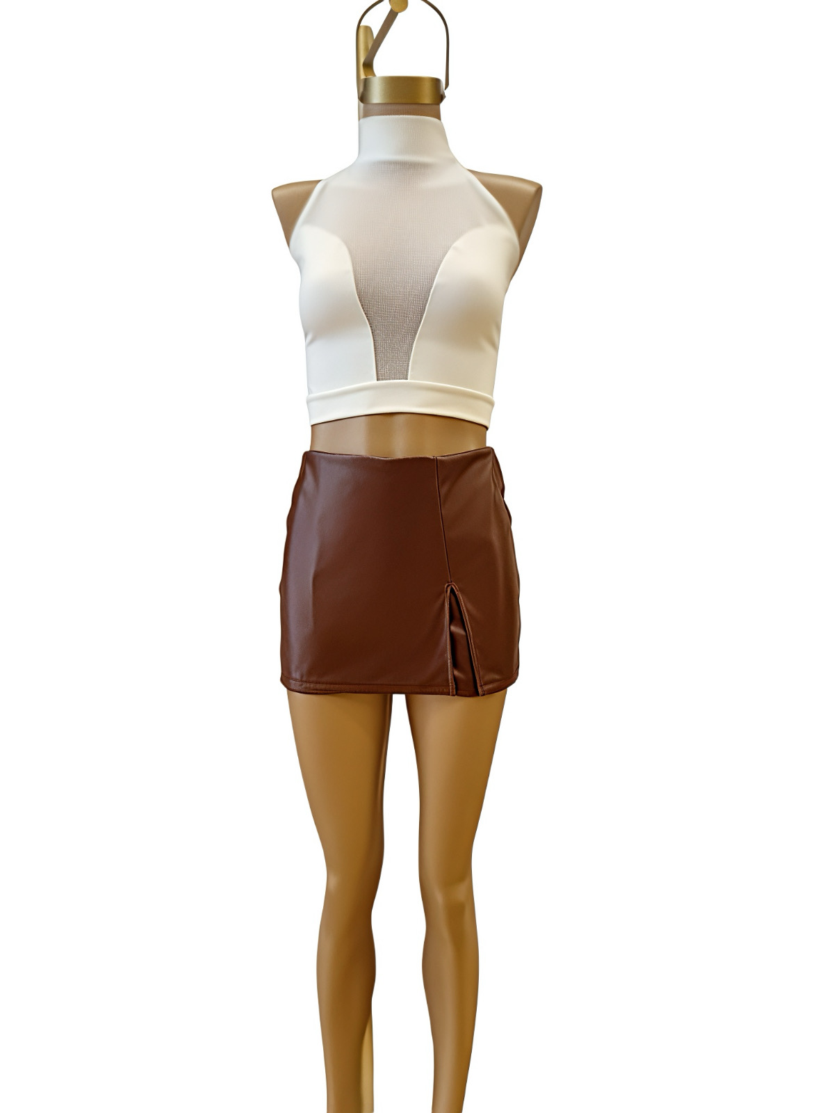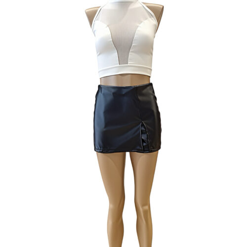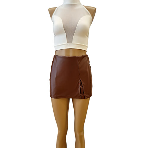 SHORT POLLERA CON TAJO DE CUERO