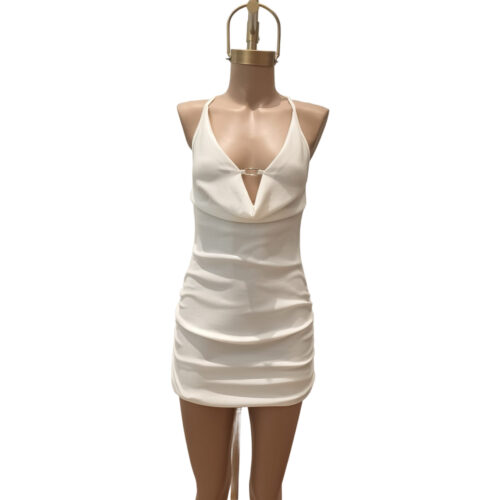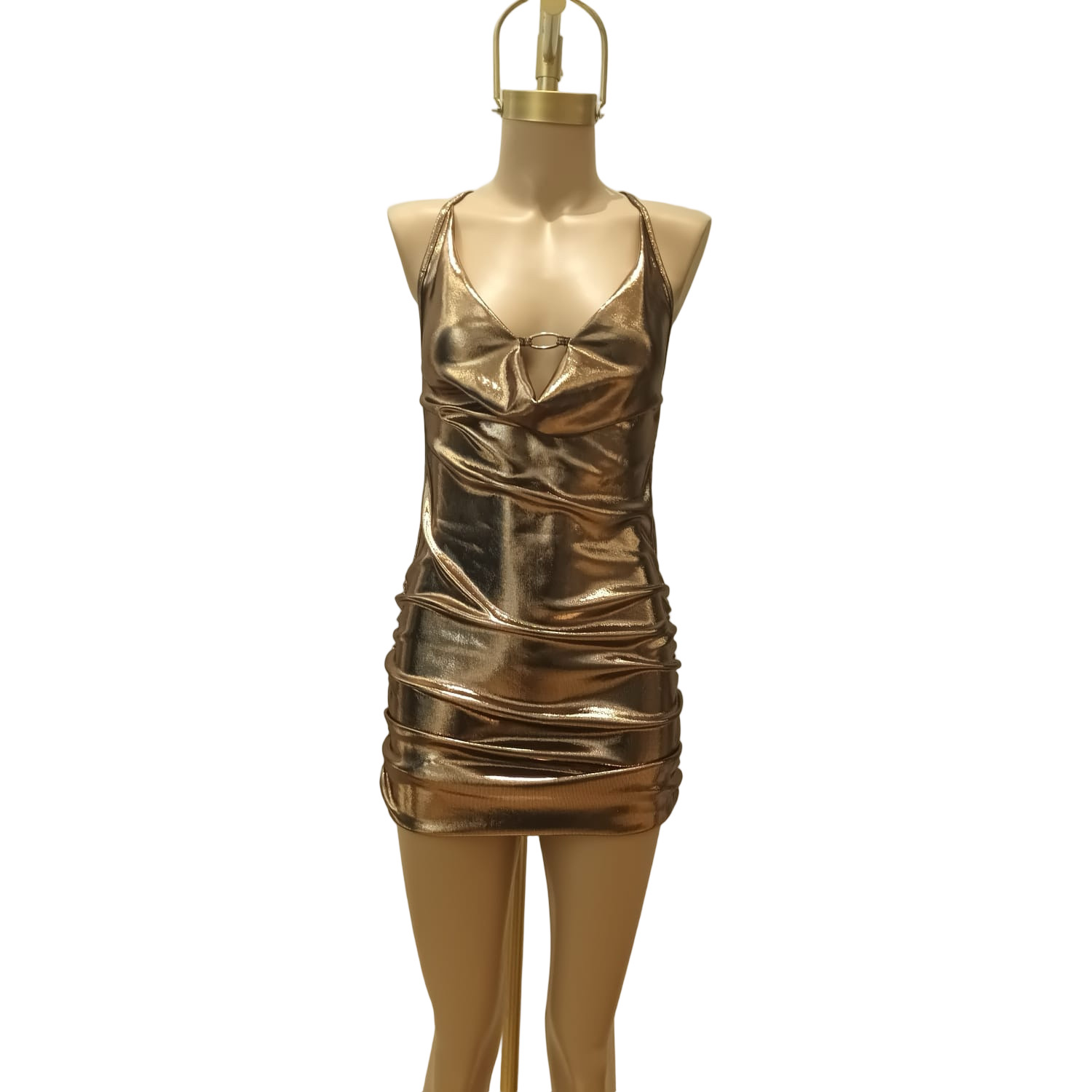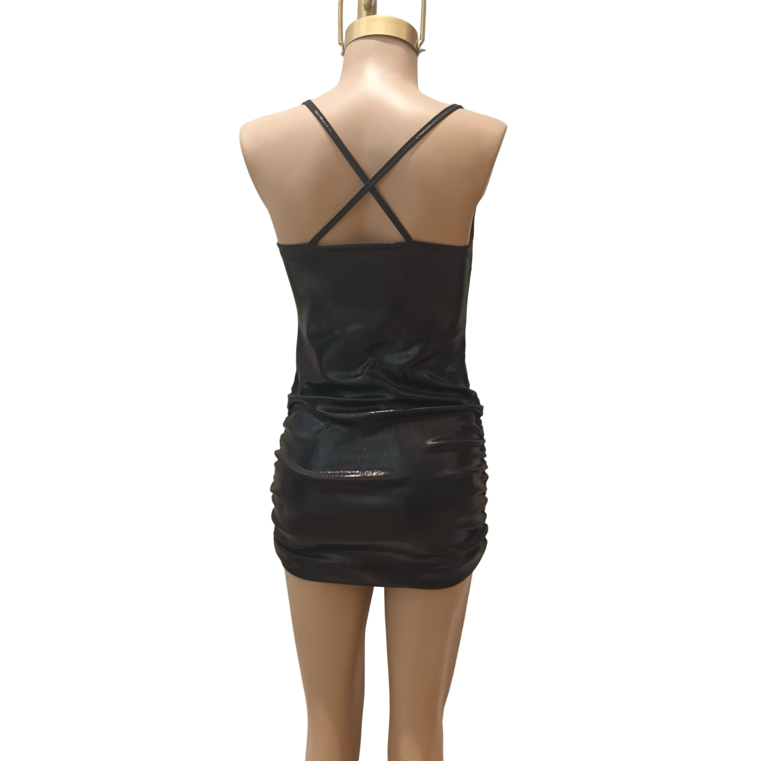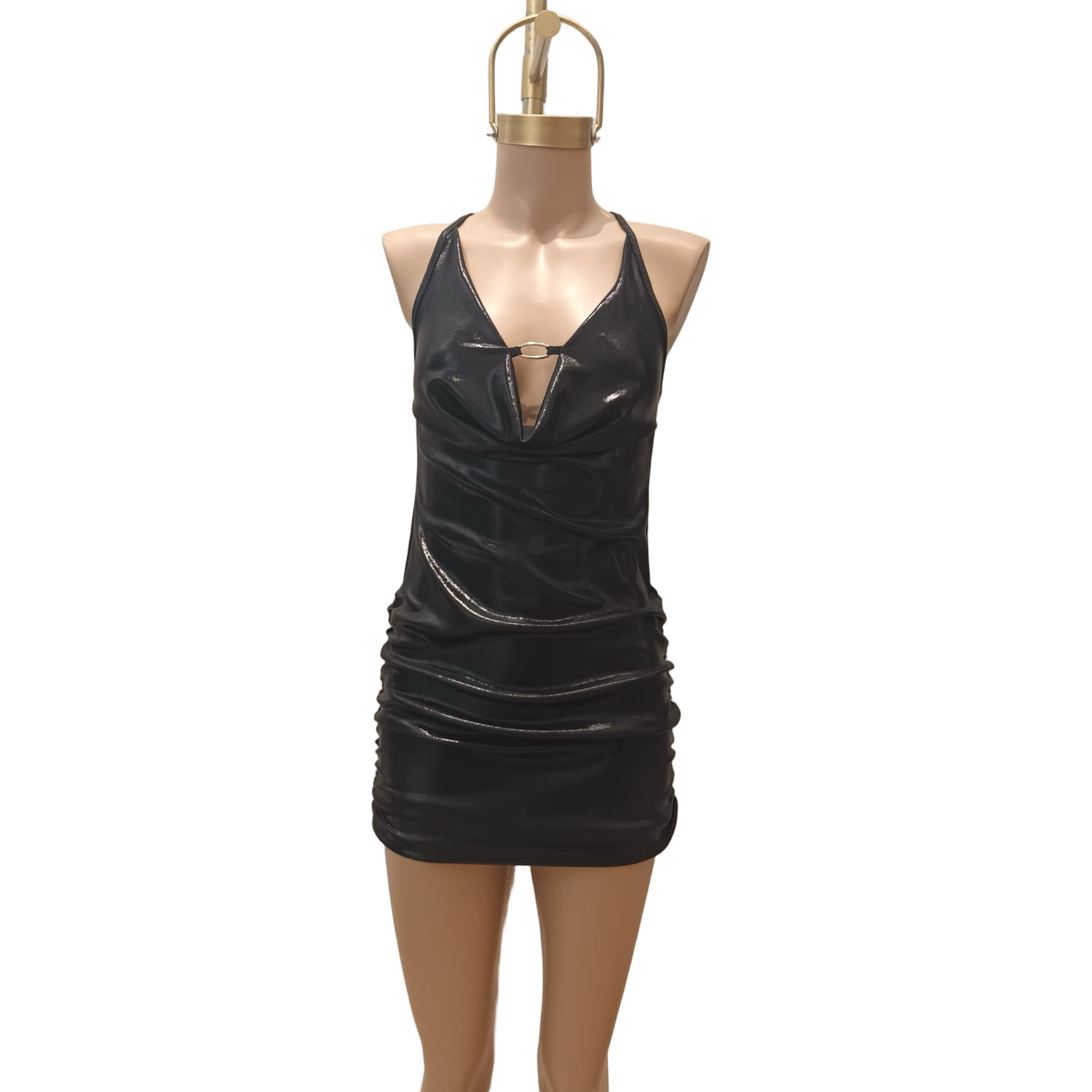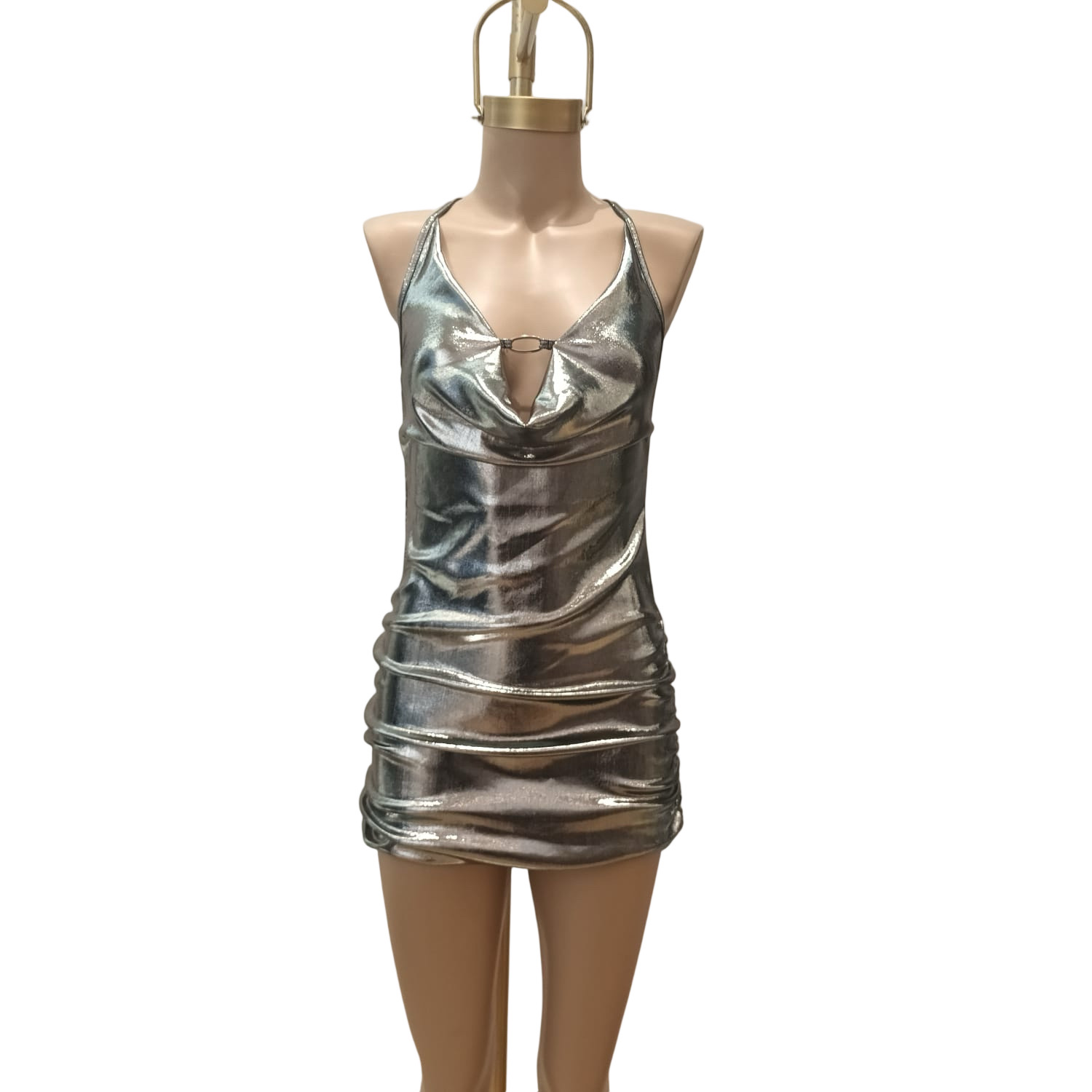 VESTIDO FOIL CON FRUNCE Y HEBILLA